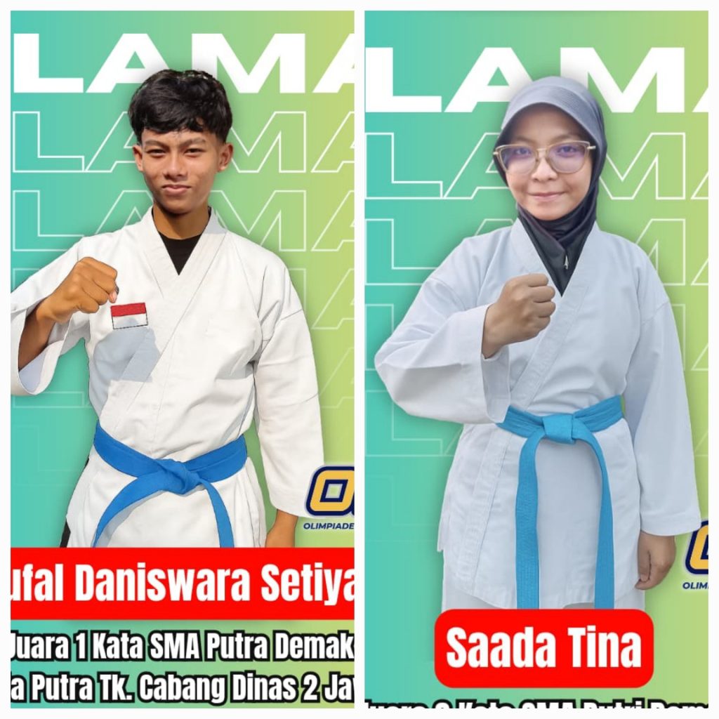 Demak, Juni 2025 — Dua siswa SMA Negeri 2 Demak kembali mengukir prestasi gemilang dalam ajang Olimpiade Olahraga Siswa Nasional (O2SN) Tingkat Kabupaten Demak dan Cabang Dinas 2 Jawa Tengah. Mereka berhasil membanggakan nama sekolah lewat cabang olahraga Karate nomor Kata.Siswa pertama, Naufal Daniswara Setiyadi, tampil gemilang dengan meraih Juara 1 Kata SMA Putra Demak. Tidak hanya itu, Naufal juga berhasil melangkah lebih jauh dengan menyabet Juara 2 Kata Putra tingkat Cabang Dinas 2 Jawa Tengah, sebuah pencapaian yang patut diapresiasi atas kerja keras dan dedikasinya dalam berlatih.Sementara itu, siswi berbakat lainnya, Saada Tina, tak kalah membanggakan. Ia berhasil membawa pulang Juara 3 Kata SMA Putri Demak setelah menunjukkan performa luar biasa di nomor yang sama. Keberhasilan ini menjadi bukti bahwa semangat juang dan ketekunan akan selalu membuahkan hasil yang manis.Kepala SMA Negeri 2 Demak beserta seluruh guru dan warga sekolah memberikan apresiasi setinggi-tingginya atas pencapaian luar biasa ini. Prestasi yang ditorehkan Naufal dan Saada diharapkan dapat memotivasi siswa-siswi lainnya untuk terus berprestasi di berbagai bidang, baik akademik maupun non-akademik.”Kami bangga dengan pencapaian ini. Semoga menjadi inspirasi bagi teman-teman lainnya untuk terus berlatih, berjuang, dan meraih impian,” ungkap salah satu guru pembimbing karate sekolah.Selamat dan sukses untuk Naufal Daniswara Setiyadi dan Saada Tina! Teruslah mengharumkan nama SMA Negeri 2 Demak di tingkat yang lebih tinggi.